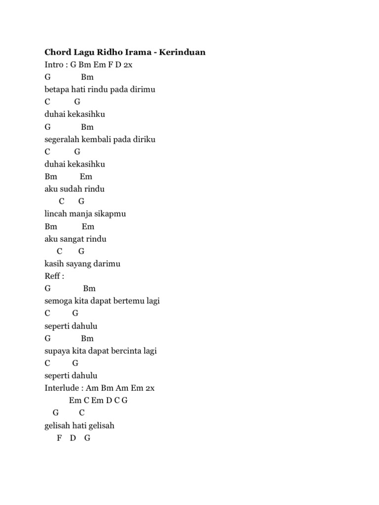 Chord Lagu Ridho Irama