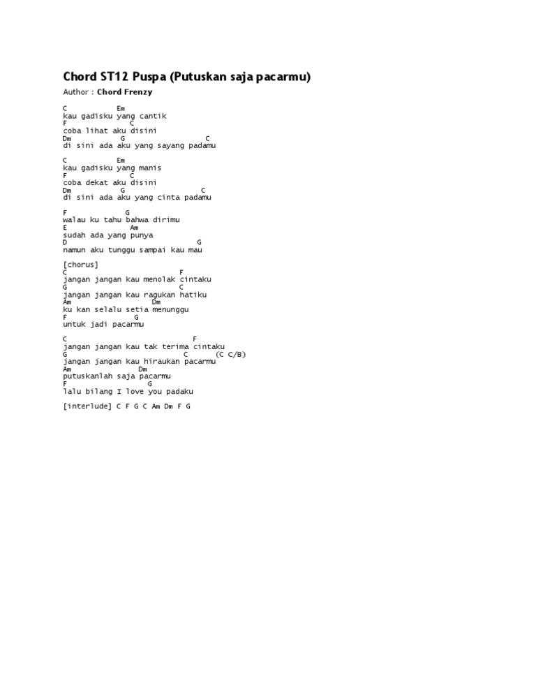 Chord St12 Puspa Putuskan Saja Pacarmu Chord Gitar Indonesia Kumpulan Kunci Gitar Musik Indonesia Dan Mancanegara