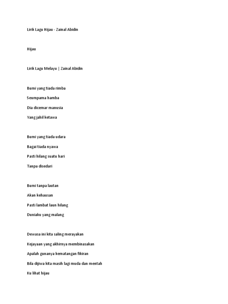 Lirik Lagu Hijau Zainal Abidin Docx