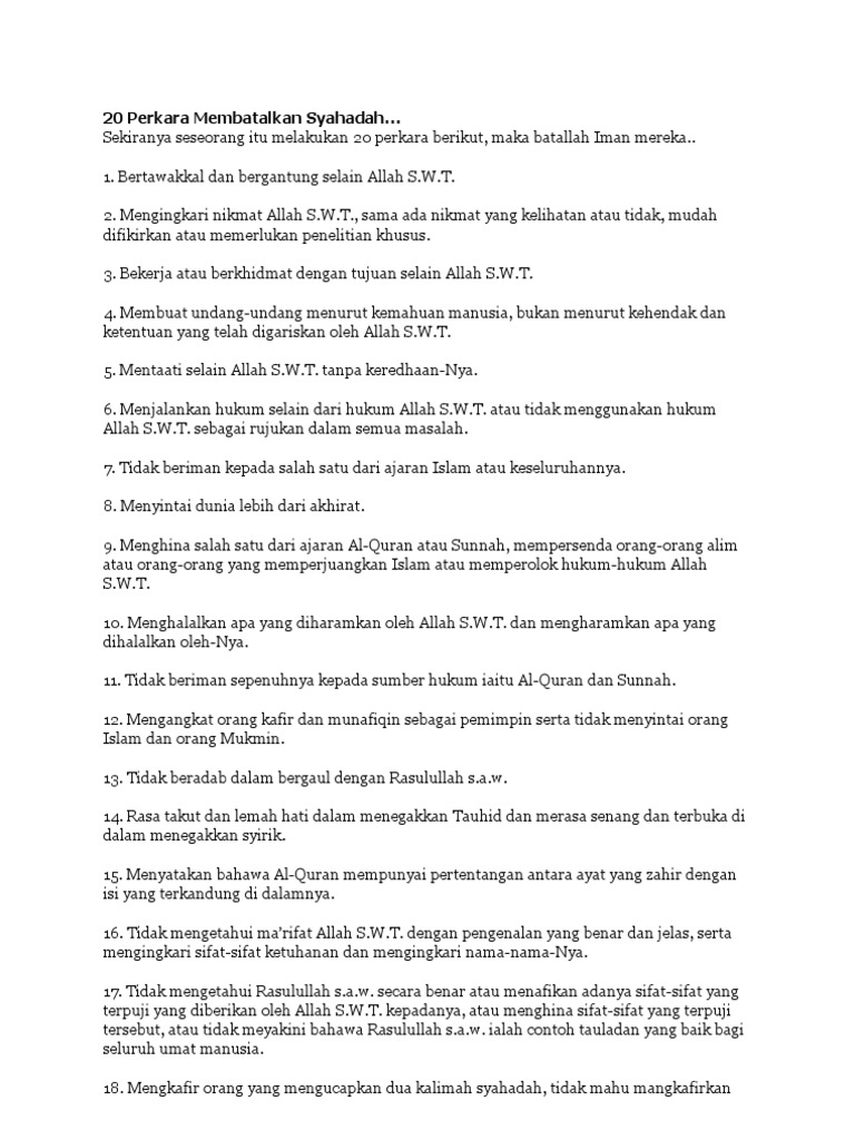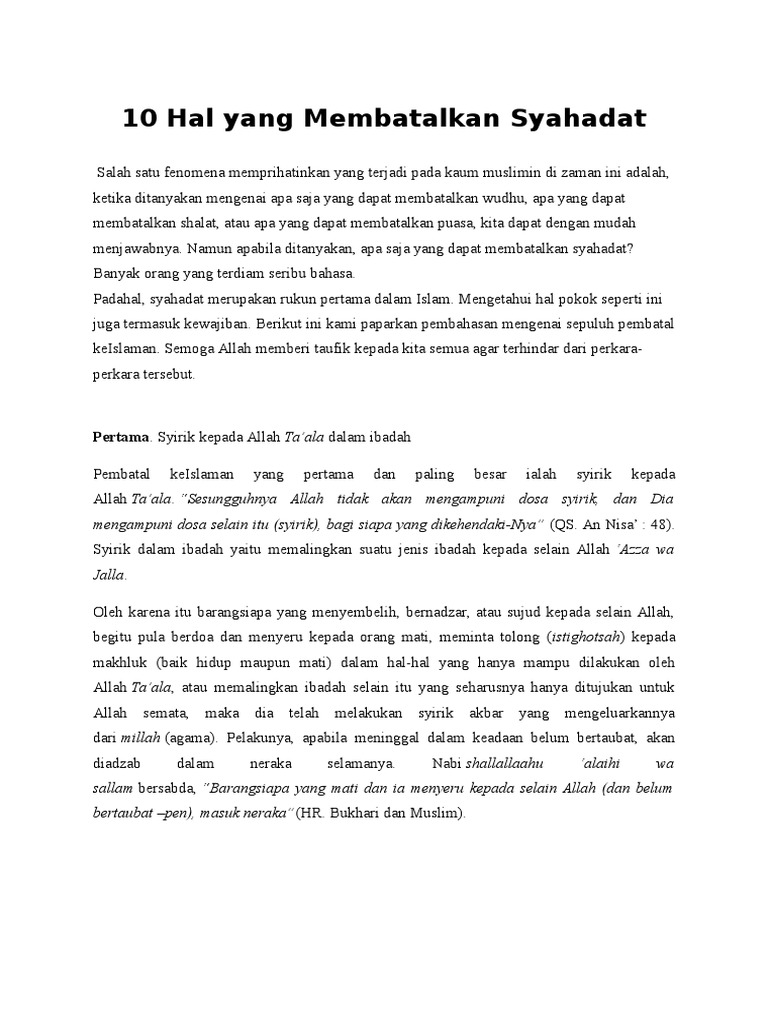 Perkara Perkara Yang Membatalkan Syahadat Atau Batalnya Keislaman Seseorang أشهد أن لا اله الا الله وأشهد ان محمد رسول الله Saya Bersaksi Bahwa Tiada Tuhan Selain Allah Dan Saya Bersaksi
