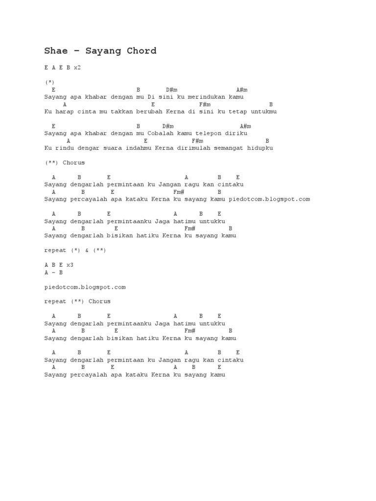 Lirik Shae Sayang Apa Khabar Dengan Mu