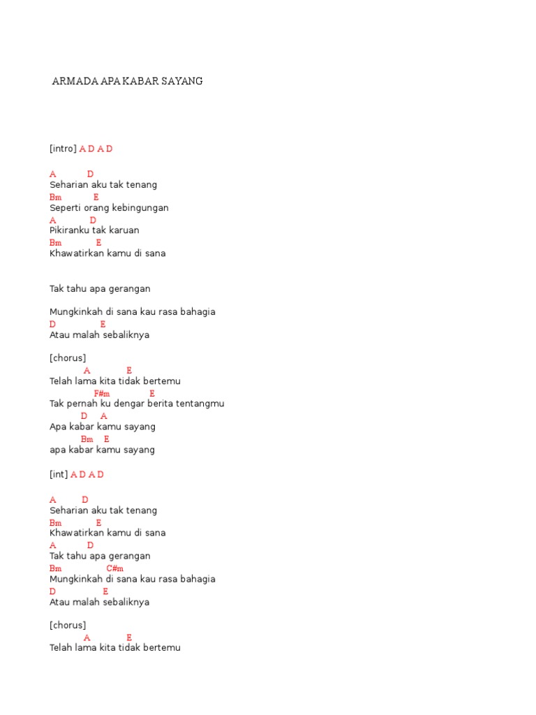 Lirik Dan Chord Lagu Sayang Apa Kabar Denganmu