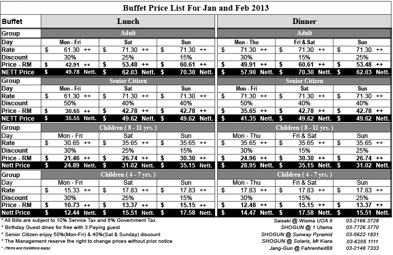 New shogun sunway. Shogun saisaki vip card. Shogun buffet at sunway pyramid just want to share with you the price of shogun buffet at sunway pyramid. Payment must be made with a maybank mastercard visa american express card debit or prepaid card.