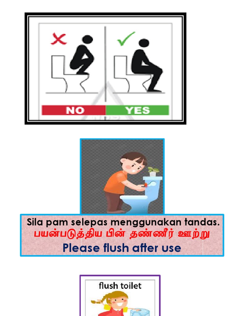 Toilet Please Wash Your Hand Do Not Throw Rubbish Into The Toilet Bowl Please Flush After Use Tandas Sila Basuh Tangan Anda Jangan Membuang Sampah Ke Dalam Mangkuk Tandas Sila Pam