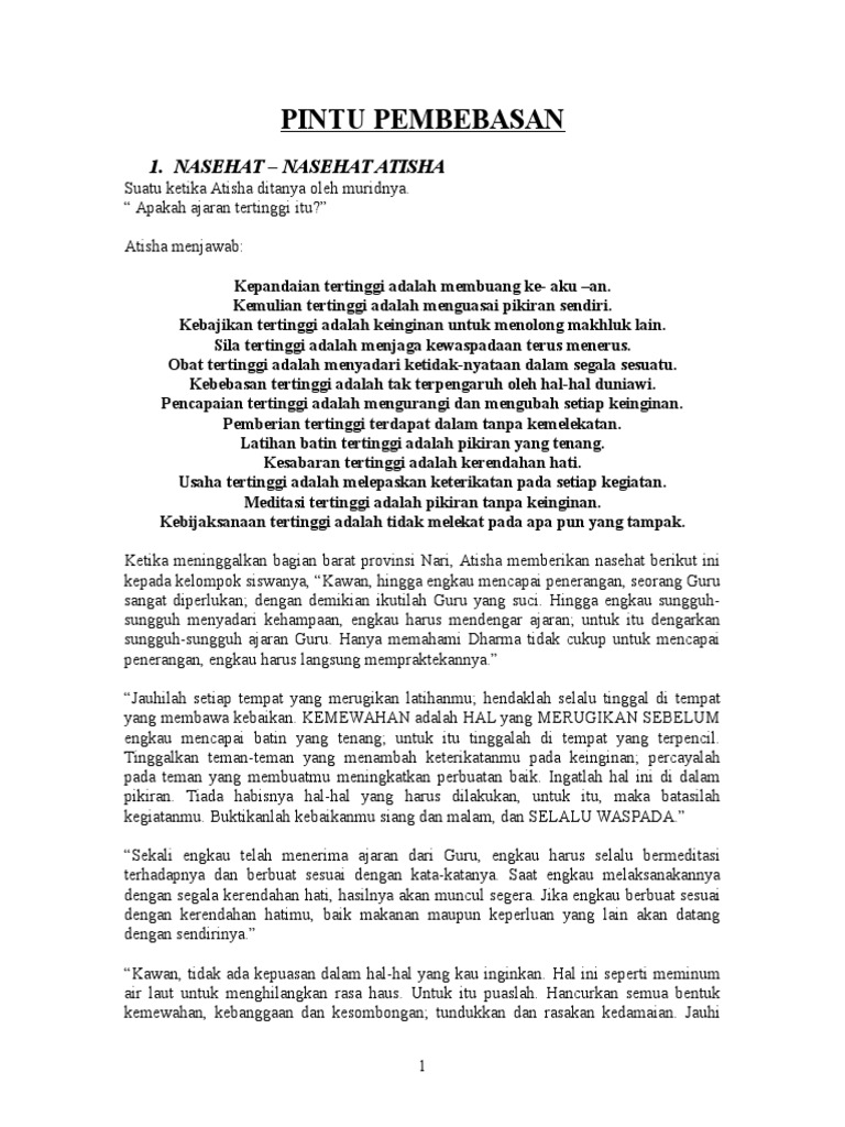 Pintu Pembebasan 1 Nasehat Nasehat Atisha